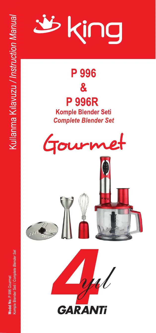Lies die bedienungsanleitung für King P-996 (12 Seiten) kostenlos online; sie gehört zur Kategorie Mixer. Dieses Handbuch wurde von 42 Personen als hilfreich bewertet und erhielt im Schnitt 4.9 Sterne aus 7 Bewertungen. Hast du eine Frage zu King P-996 oder möchtest du andere Nutzer dieses Produkts befragen? Stelle eine Frage