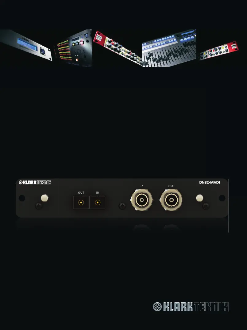 Lies die bedienungsanleitung für Klark Teknik DN32-MADI (83 Seiten) kostenlos online; sie gehört zur Kategorie Stabmixer. Dieses Handbuch wurde von 39 Personen als hilfreich bewertet und erhielt im Schnitt 4.9 Sterne aus 7 Bewertungen. Hast du eine Frage zu Klark Teknik DN32-MADI oder möchtest du andere Nutzer dieses Produkts befragen? Stelle eine Frage