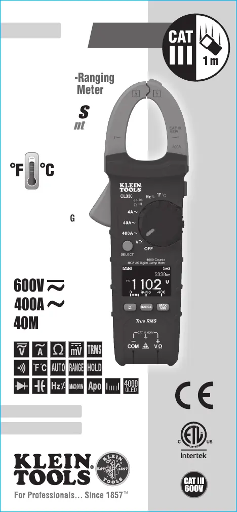 Lies die bedienungsanleitung für Klein Tools CL330 (56 Seiten) kostenlos online; sie gehört zur Kategorie Messung. Dieses Handbuch wurde von 8 Personen als hilfreich bewertet und erhielt im Schnitt 4.1 Sterne aus 8 Bewertungen. Hast du eine Frage zu Klein Tools CL330 oder möchtest du andere Nutzer dieses Produkts befragen? Stelle eine Frage