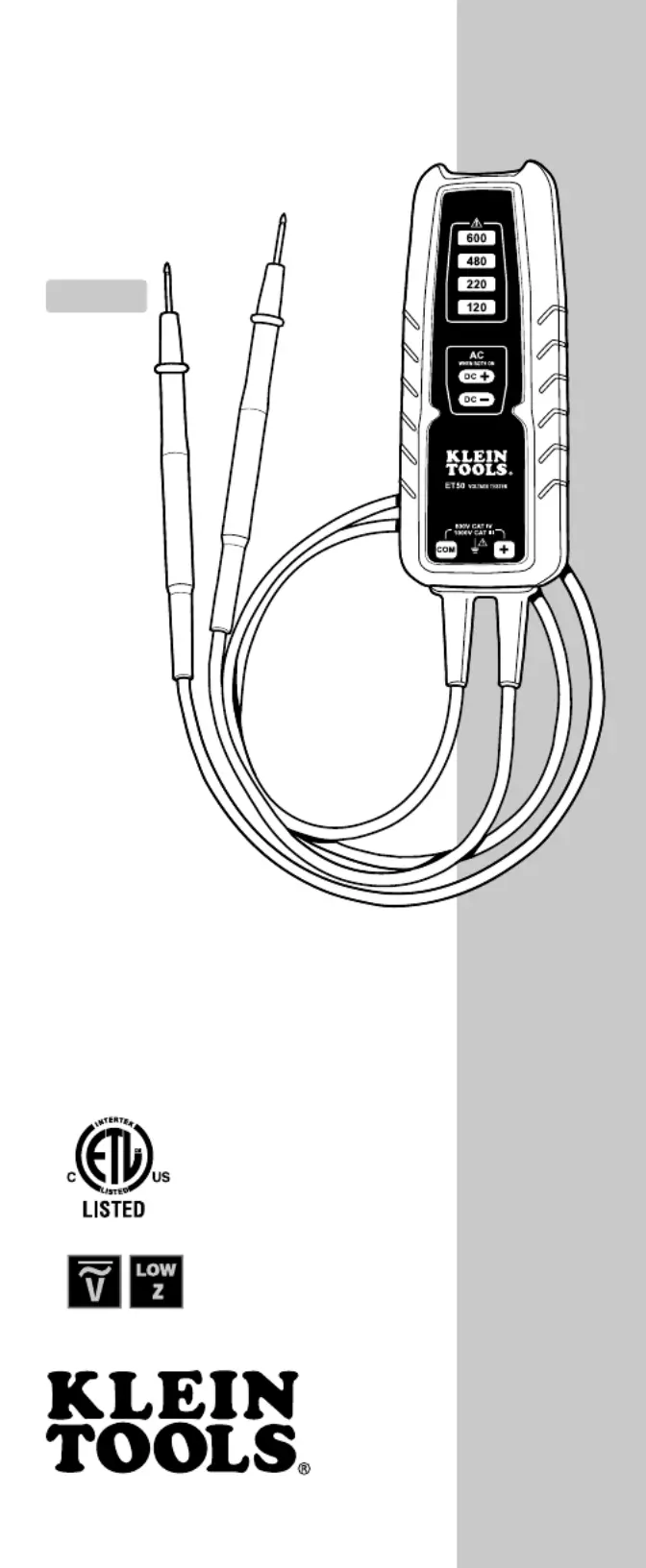 Lies die bedienungsanleitung für Klein Tools ET50 (6 Seiten) kostenlos online; sie gehört zur Kategorie Messung. Dieses Handbuch wurde von 7 Personen als hilfreich bewertet und erhielt im Schnitt 4.2 Sterne aus 5 Bewertungen. Hast du eine Frage zu Klein Tools ET50 oder möchtest du andere Nutzer dieses Produkts befragen? Stelle eine Frage