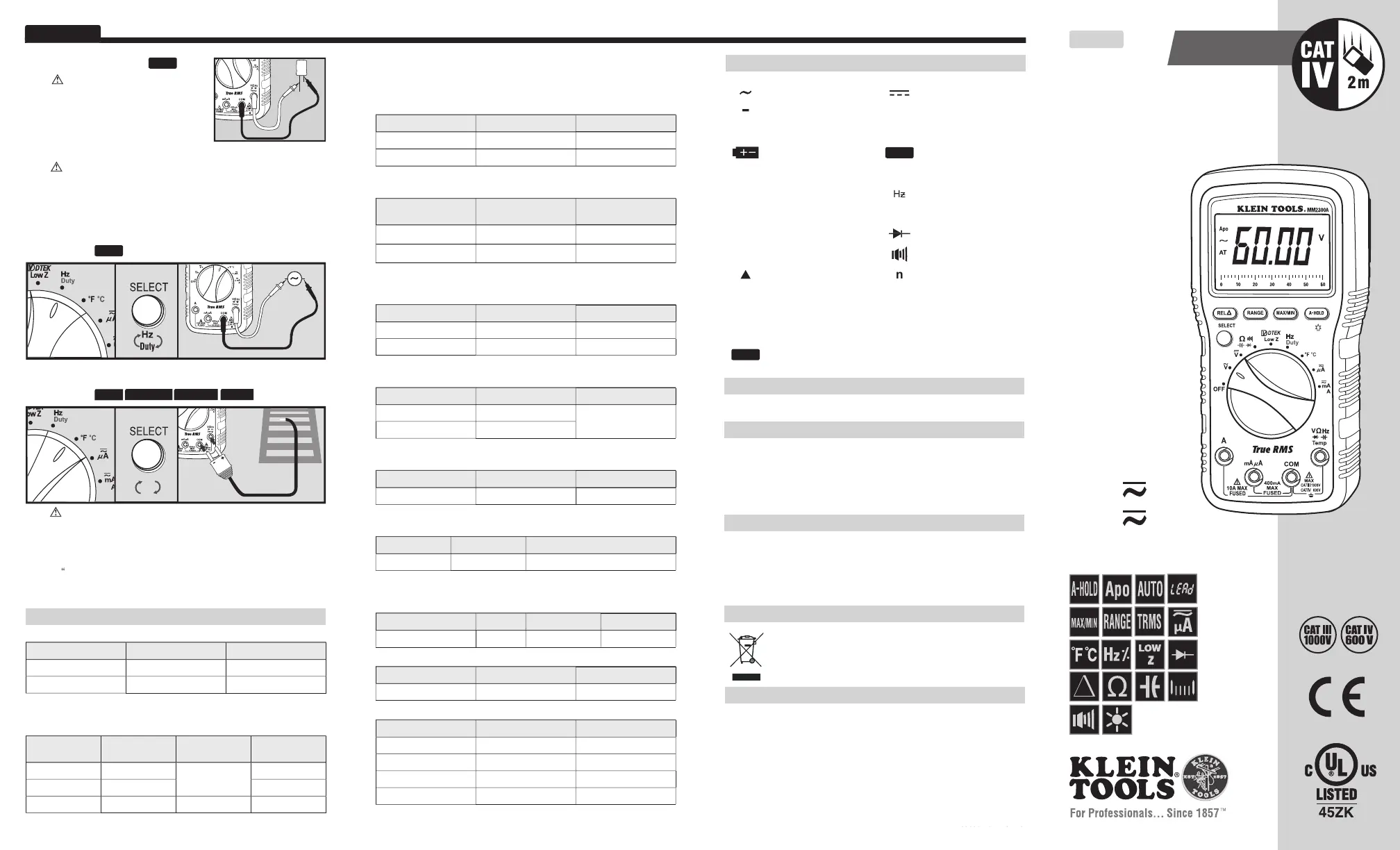 Lies die bedienungsanleitung für Klein Tools MM2300A (10 Seiten) kostenlos online; sie gehört zur Kategorie Multimeter. Dieses Handbuch wurde von 7 Personen als hilfreich bewertet und erhielt im Schnitt 4.6 Sterne aus 4 Bewertungen. Hast du eine Frage zu Klein Tools MM2300A oder möchtest du andere Nutzer dieses Produkts befragen? Stelle eine Frage
