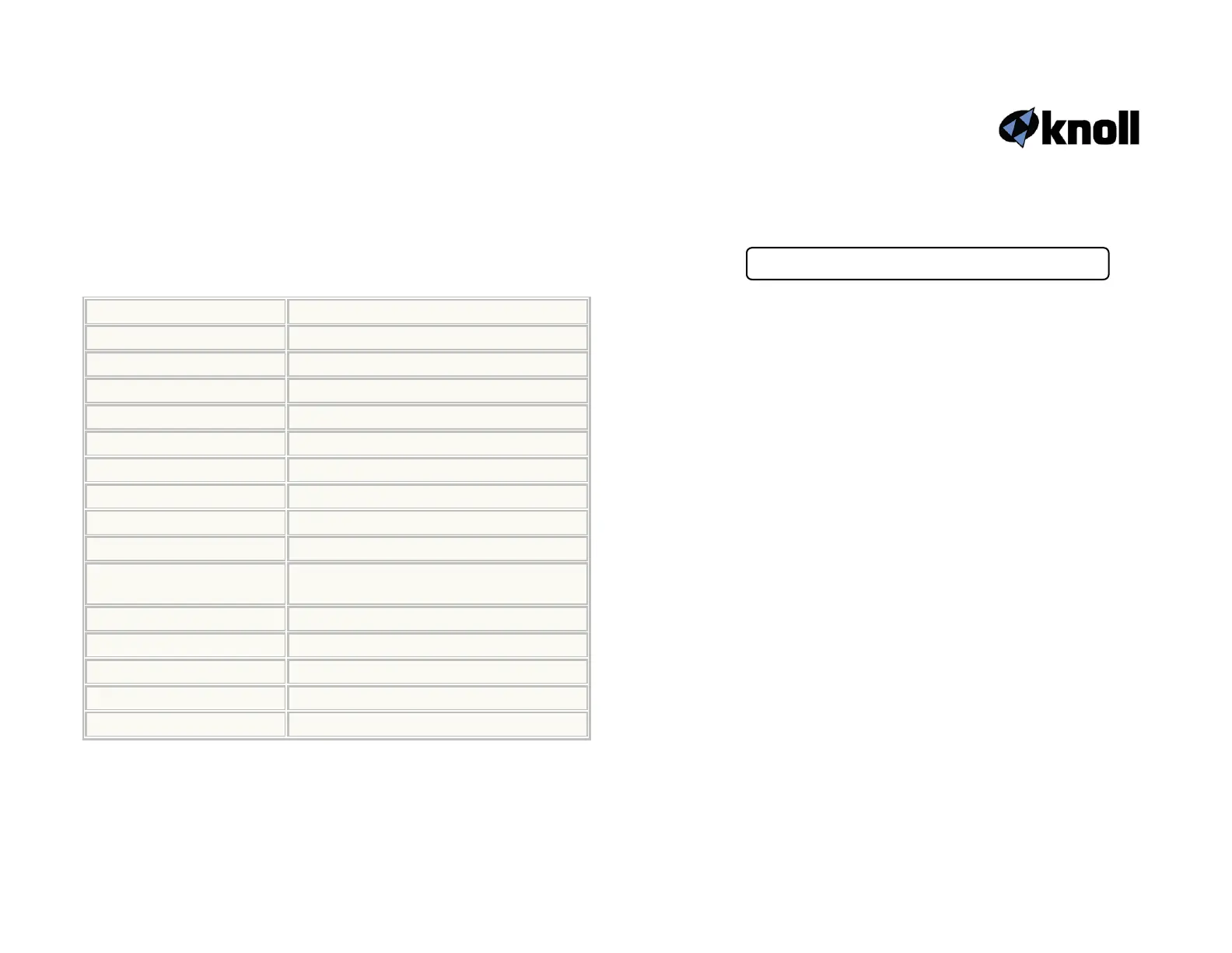 replaced at Knoll Systems decision, at no charge. Knoll Systems will not be