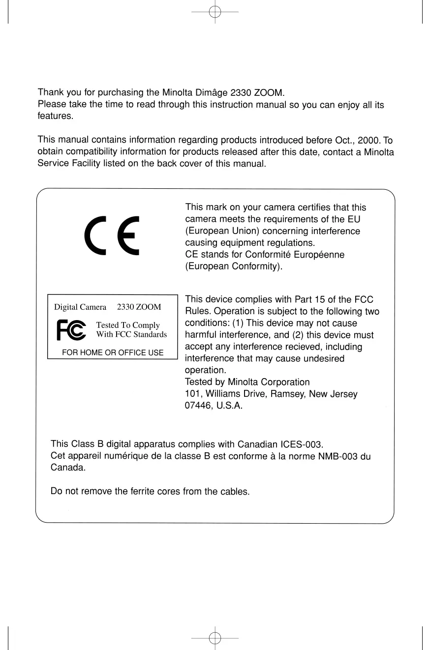 Lies die bedienungsanleitung für Konica-Minolta Dimage 2330 Zoom (160 Seiten) kostenlos online; sie gehört zur Kategorie Nicht kategorisiert. Dieses Handbuch wurde von 29 Personen als hilfreich bewertet und erhielt im Schnitt 4.6 Sterne aus 15 Bewertungen. Hast du eine Frage zu Konica-Minolta Dimage 2330 Zoom oder möchtest du andere Nutzer dieses Produkts befragen? Stelle eine Frage