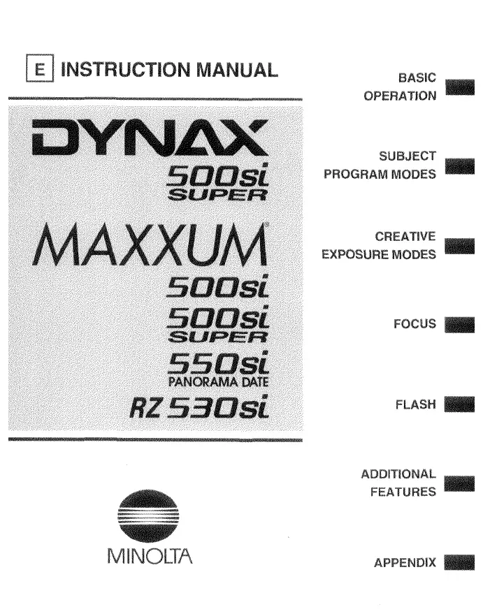 Lies die bedienungsanleitung für Konica-Minolta Maxxum RZ530Si (88 Seiten) kostenlos online; sie gehört zur Kategorie Nicht kategorisiert. Dieses Handbuch wurde von 30 Personen als hilfreich bewertet und erhielt im Schnitt 4.6 Sterne aus 9 Bewertungen. Hast du eine Frage zu Konica-Minolta Maxxum RZ530Si oder möchtest du andere Nutzer dieses Produkts befragen? Stelle eine Frage