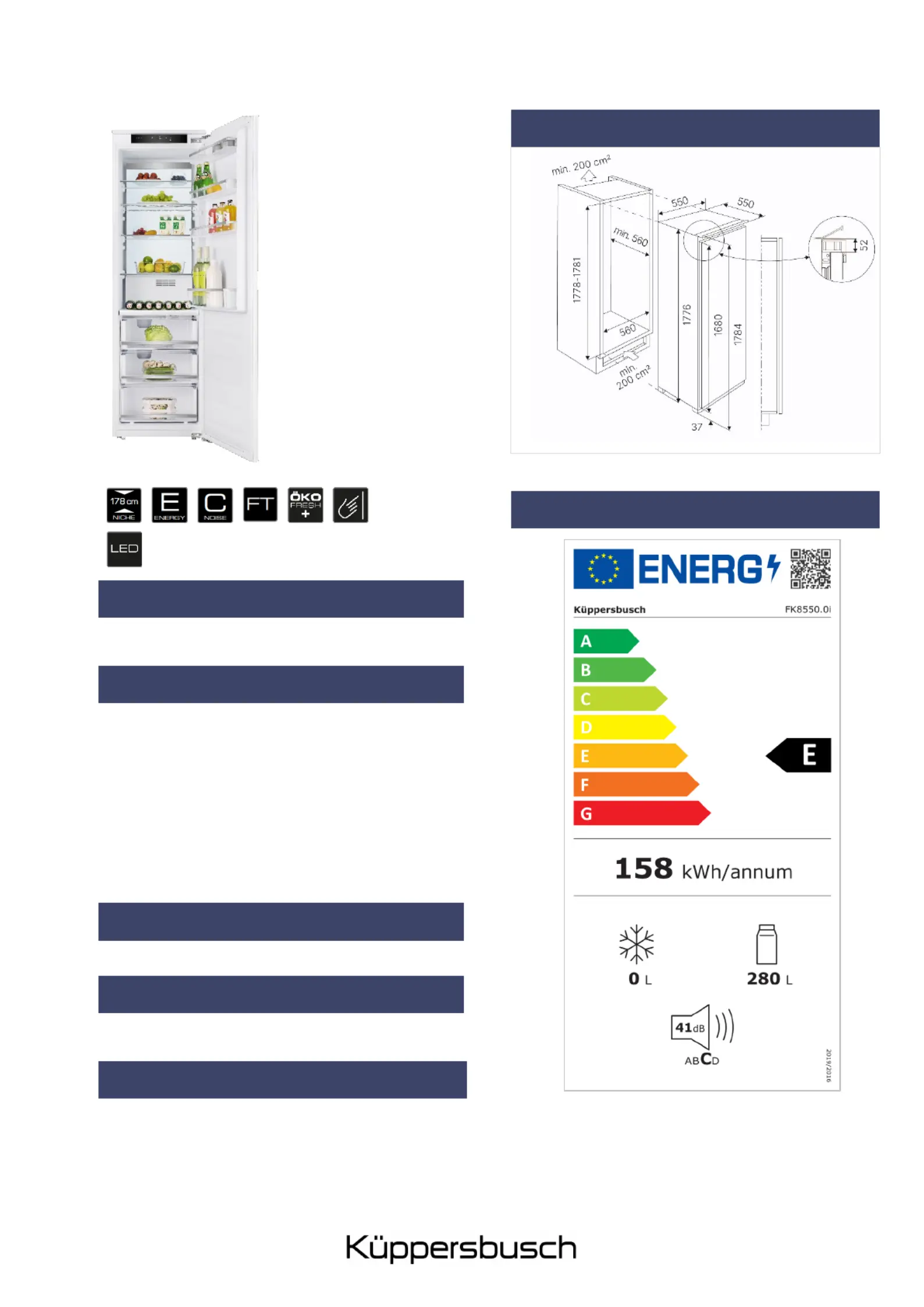 Lies die bedienungsanleitung für Küppersbusch FK8550.0i (24 Seiten) kostenlos online; sie gehört zur Kategorie Kühlschrank. Dieses Handbuch wurde von 52 Personen als hilfreich bewertet und erhielt im Schnitt 4.8 Sterne aus 2 Bewertungen. Hast du eine Frage zu Küppersbusch FK8550.0i oder möchtest du andere Nutzer dieses Produkts befragen? Stelle eine Frage
