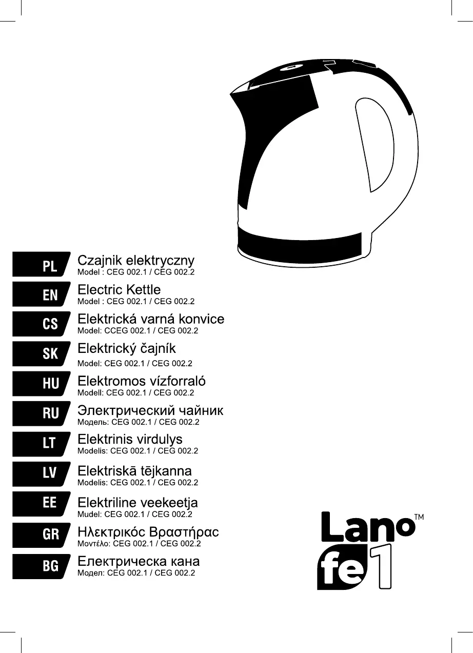 Lies die bedienungsanleitung für Lafe CEG002.2 (40 Seiten) kostenlos online; sie gehört zur Kategorie Wasserkocher. Dieses Handbuch wurde von 36 Personen als hilfreich bewertet und erhielt im Schnitt 4.7 Sterne aus 18.5 Bewertungen. Hast du eine Frage zu Lafe CEG002.2 oder möchtest du andere Nutzer dieses Produkts befragen? Stelle eine Frage