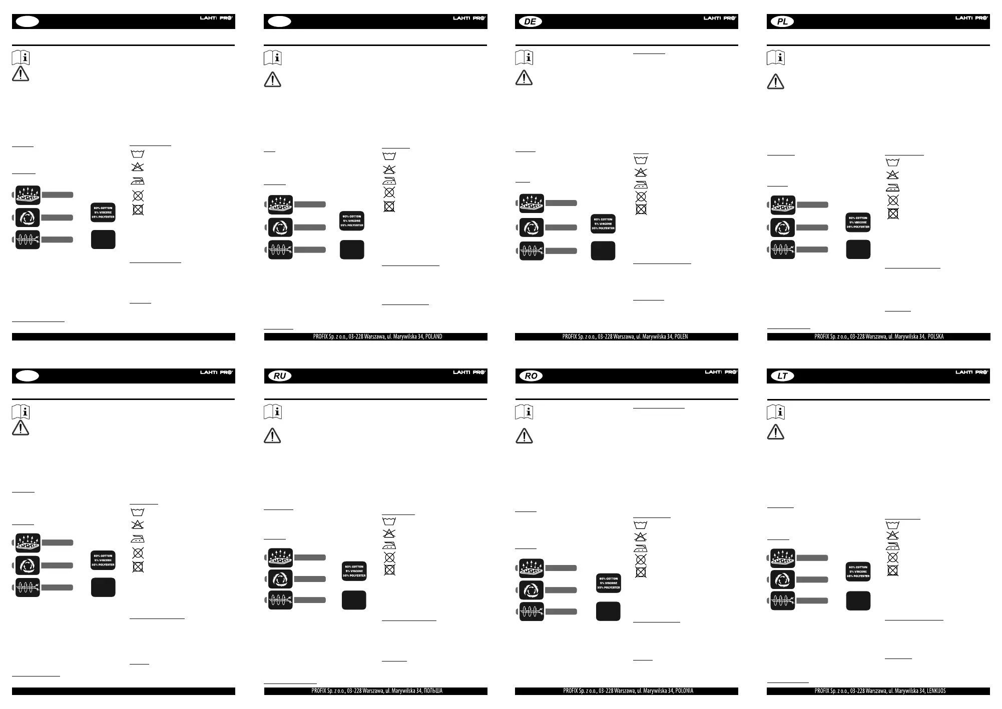 Oznakeoblačil:simbolproizvajalcaLAHTIPRO,št.Izdelka,velikost,