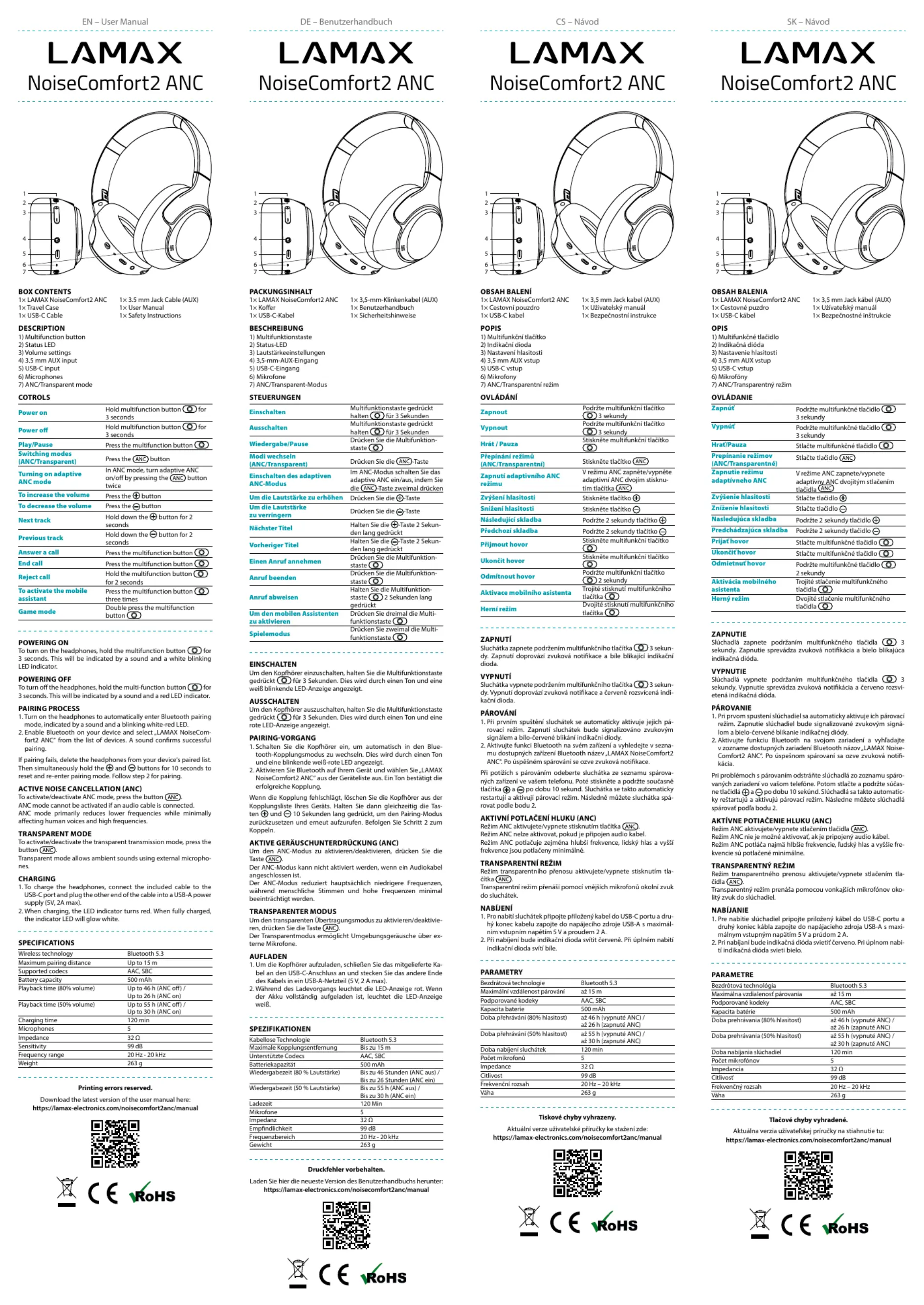 Lamax NoiseComfort2 ANC Bedienungsanleitung