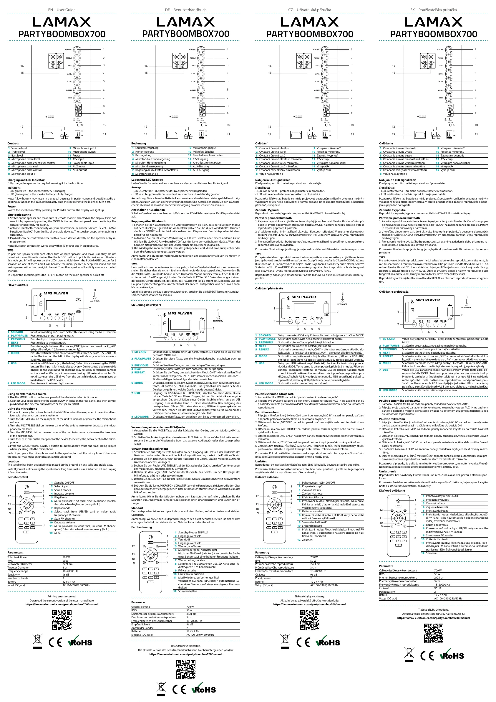 Lies die bedienungsanleitung für Lamax PartyBoomBox700 (2 Seiten) kostenlos online; sie gehört zur Kategorie Lautsprecher. Dieses Handbuch wurde von 22 Personen als hilfreich bewertet und erhielt im Schnitt 4.3 Sterne aus 11.5 Bewertungen. Hast du eine Frage zu Lamax PartyBoomBox700 oder möchtest du andere Nutzer dieses Produkts befragen? Stelle eine Frage