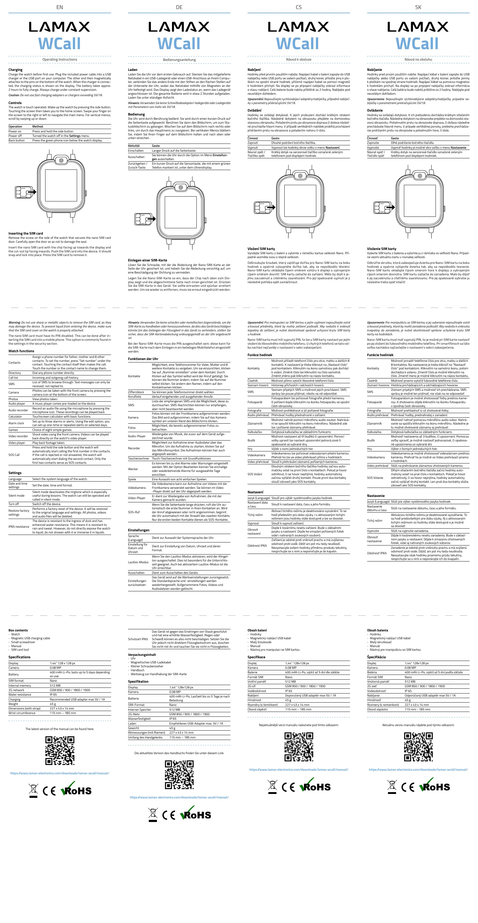 Lies die bedienungsanleitung für Lamax WCall (2 Seiten) kostenlos online; sie gehört zur Kategorie Smartwatch. Dieses Handbuch wurde von 26 Personen als hilfreich bewertet und erhielt im Schnitt 4.4 Sterne aus 13.5 Bewertungen. Hast du eine Frage zu Lamax WCall oder möchtest du andere Nutzer dieses Produkts befragen? Stelle eine Frage