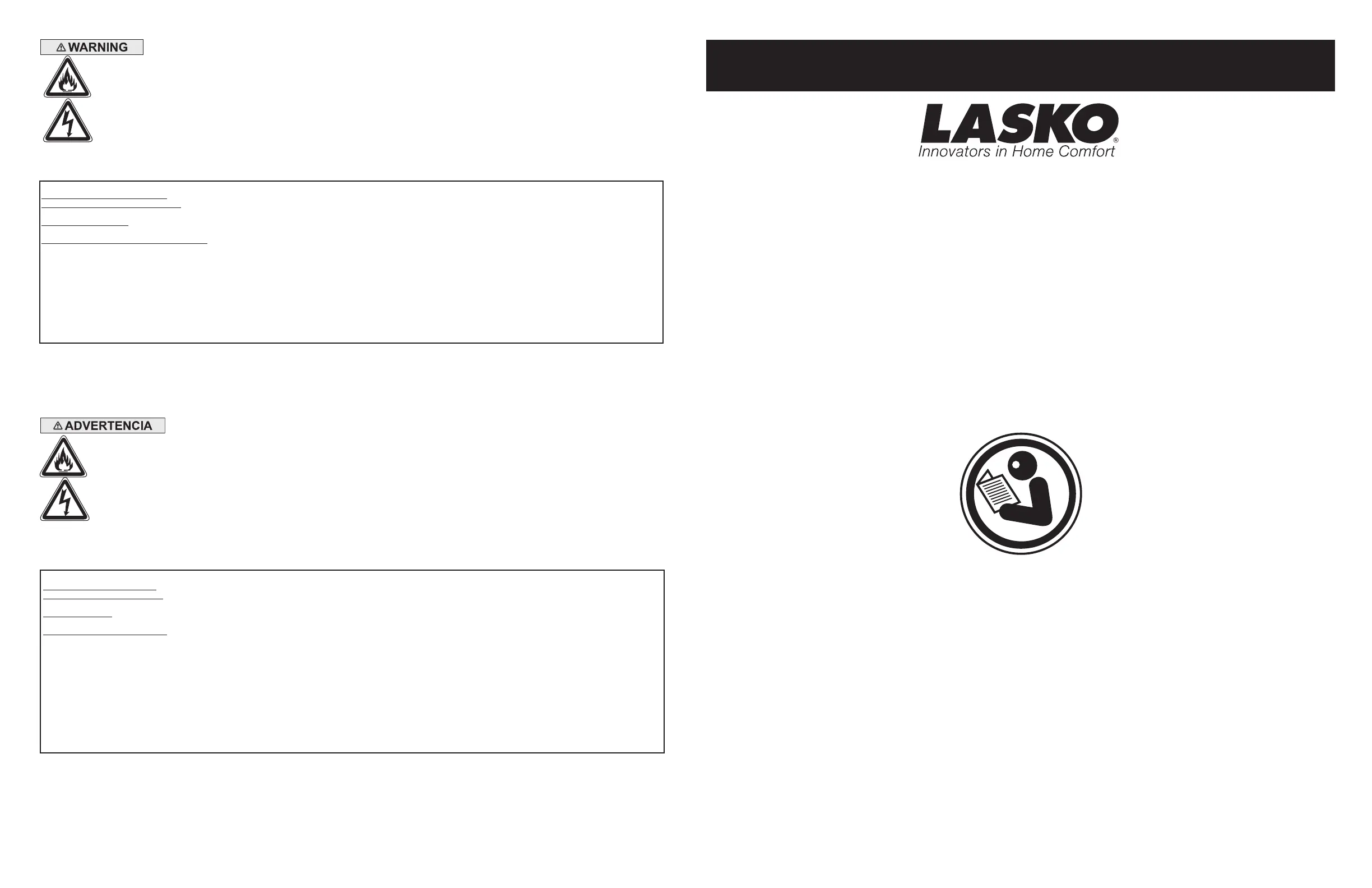 envío, abuso, mal uso, reparaciones no autorizadas hechas o el intento de hacerlas. Esta garantía no cubre los costos de envío para la devolución de productos a Lasko para su