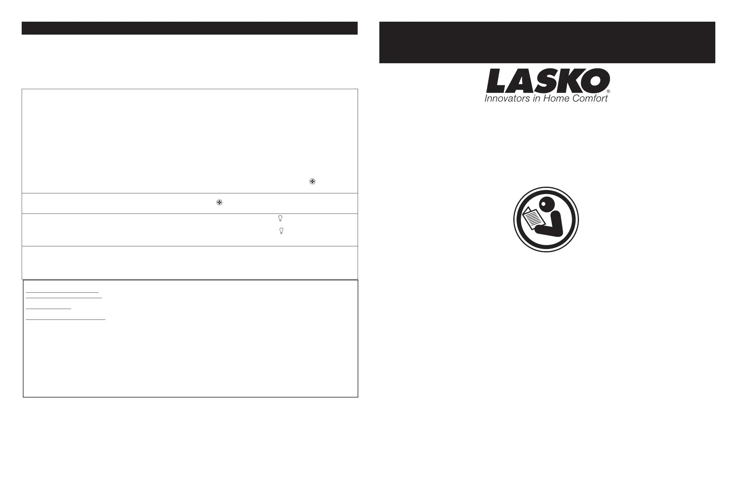 QUÉ HARÁ LASKO: Durante el período de garantía, Lasko, a opción propia, reparará o reemplazará cualquier parte o partes que demuestren ser