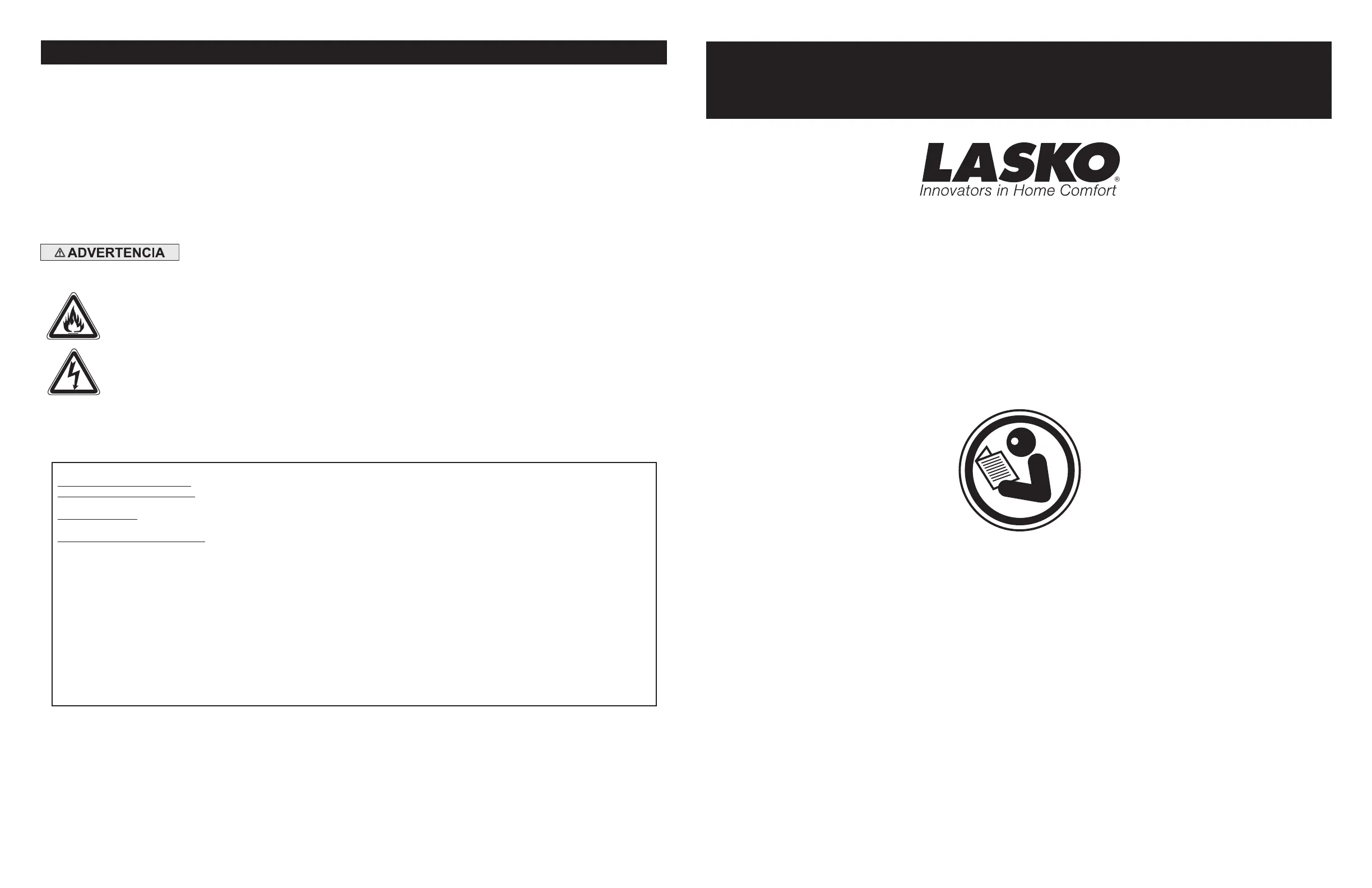 QUÉ HARÁ LASKO: Durante el período de garantía, Lasko, a opción propia, reparará o reemplazará cualquier parte o partes que demuestren ser