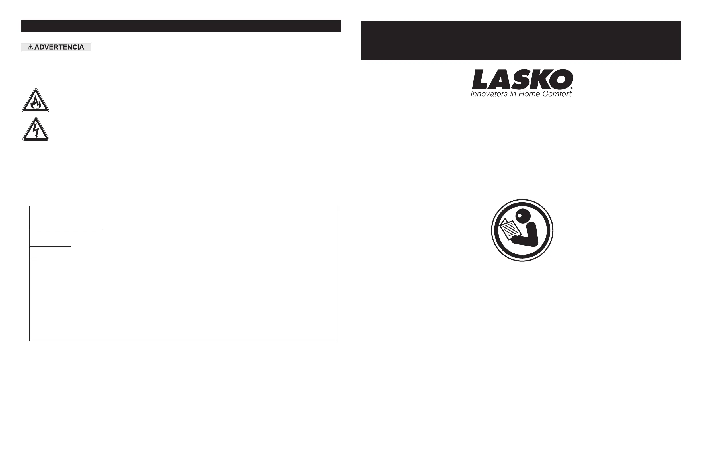 QUÉ HARÁ LASKO: Durante el período de garantía, Lasko, a opción propia, reparará o reemplazará cualquier parte o partes que demuestren ser