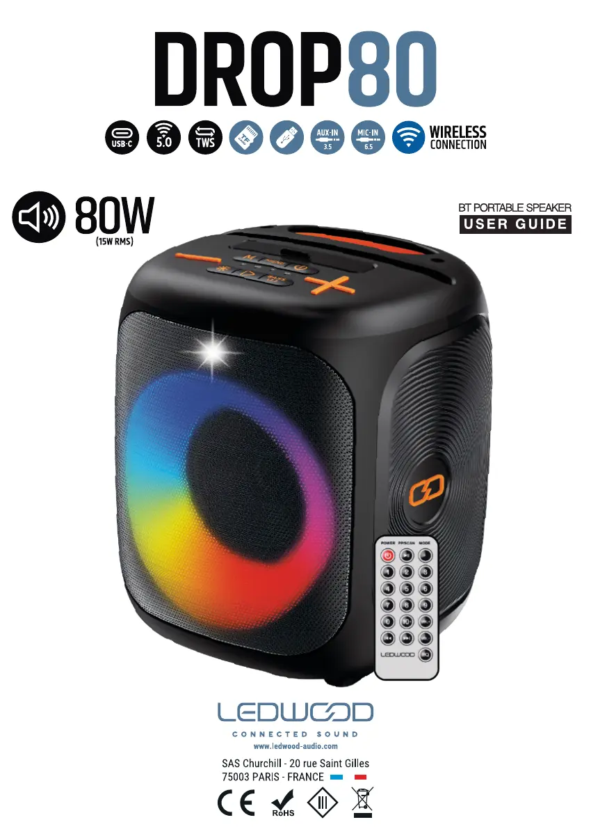 Lies die bedienungsanleitung für LEDWOOD DROP 80 (11 Seiten) kostenlos online; sie gehört zur Kategorie Lautsprecher. Dieses Handbuch wurde von 2 Personen als hilfreich bewertet und erhielt im Schnitt 4.7 Sterne aus 8 Bewertungen. Hast du eine Frage zu LEDWOOD DROP 80 oder möchtest du andere Nutzer dieses Produkts befragen? Stelle eine Frage