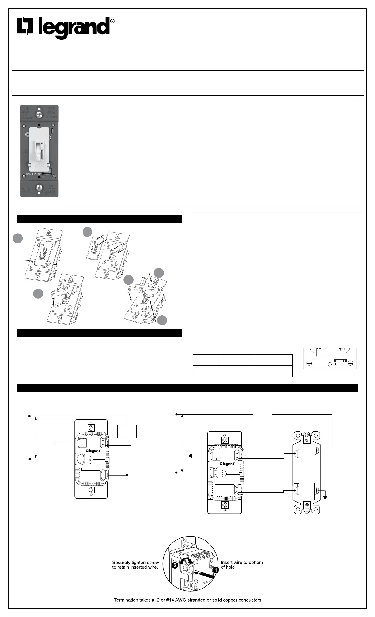 stranded or solid copper conductors. Strip wire using gauge on back of device