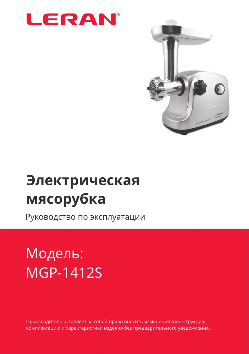 Lies die bedienungsanleitung für LERAN MGP-1412S (12 Seiten) kostenlos online; sie gehört zur Kategorie Fleischwolf. Dieses Handbuch wurde von 19 Personen als hilfreich bewertet und erhielt im Schnitt 4.1 Sterne aus 6 Bewertungen. Hast du eine Frage zu LERAN MGP-1412S oder möchtest du andere Nutzer dieses Produkts befragen? Stelle eine Frage