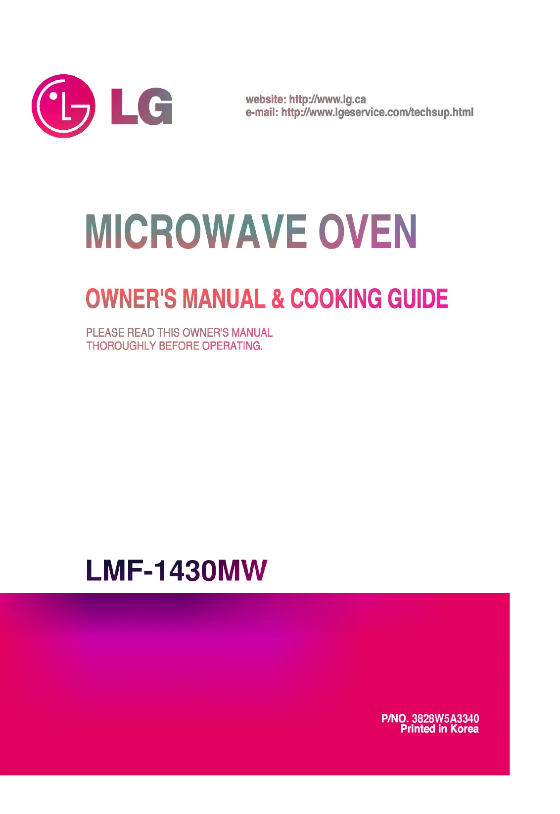 Lies die bedienungsanleitung für LG LMF-1430MW (32 Seiten) kostenlos online; sie gehört zur Kategorie Ofen. Dieses Handbuch wurde von 21 Personen als hilfreich bewertet und erhielt im Schnitt 5.0 Sterne aus 9 Bewertungen. Hast du eine Frage zu LG LMF-1430MW oder möchtest du andere Nutzer dieses Produkts befragen? Stelle eine Frage