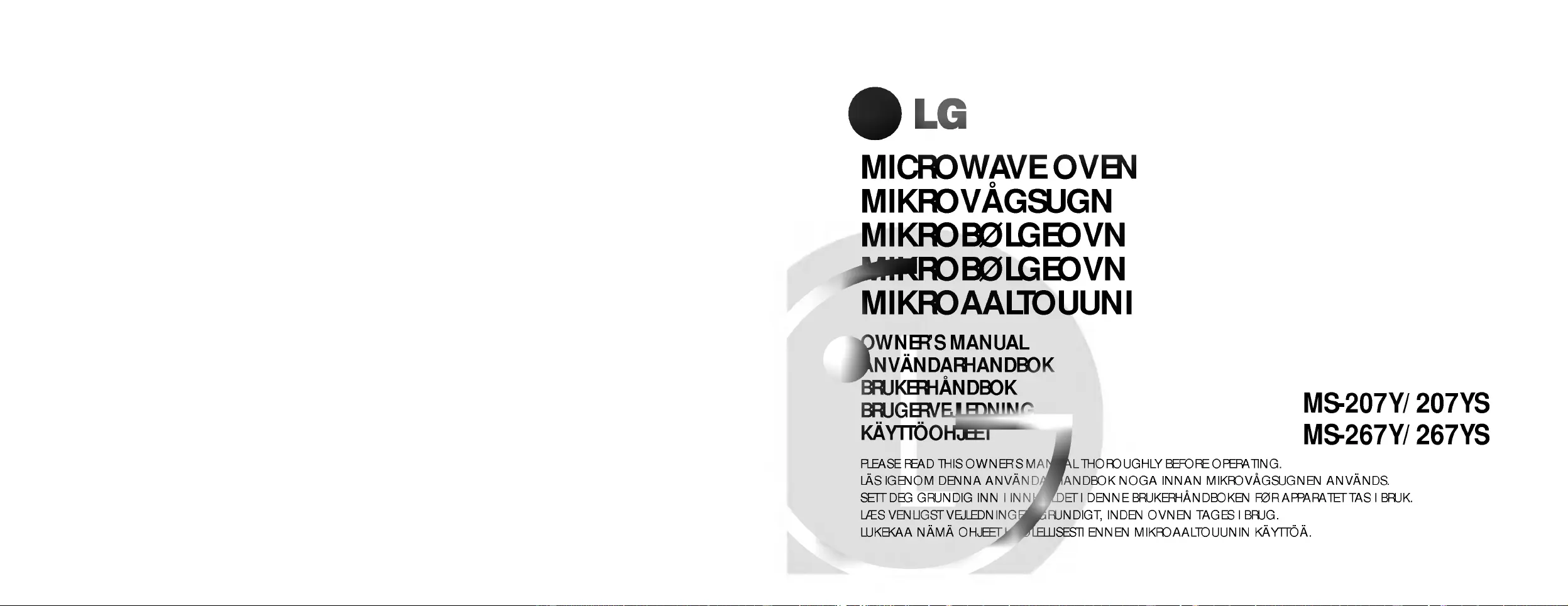 Lies die bedienungsanleitung für LG MS-207YS (28 Seiten) kostenlos online; sie gehört zur Kategorie Backöfen. Dieses Handbuch wurde von 8 Personen als hilfreich bewertet und erhielt im Schnitt 4.3 Sterne aus 4.5 Bewertungen. Hast du eine Frage zu LG MS-207YS oder möchtest du andere Nutzer dieses Produkts befragen? Stelle eine Frage