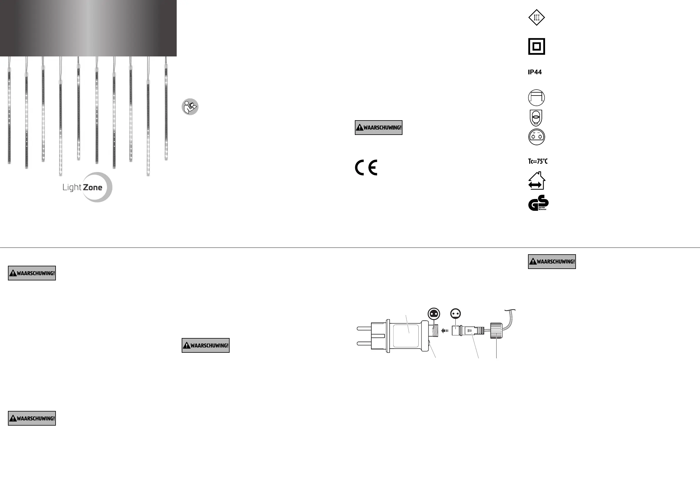 Het lampjessnoer mag niet op het elektriciteitsnet