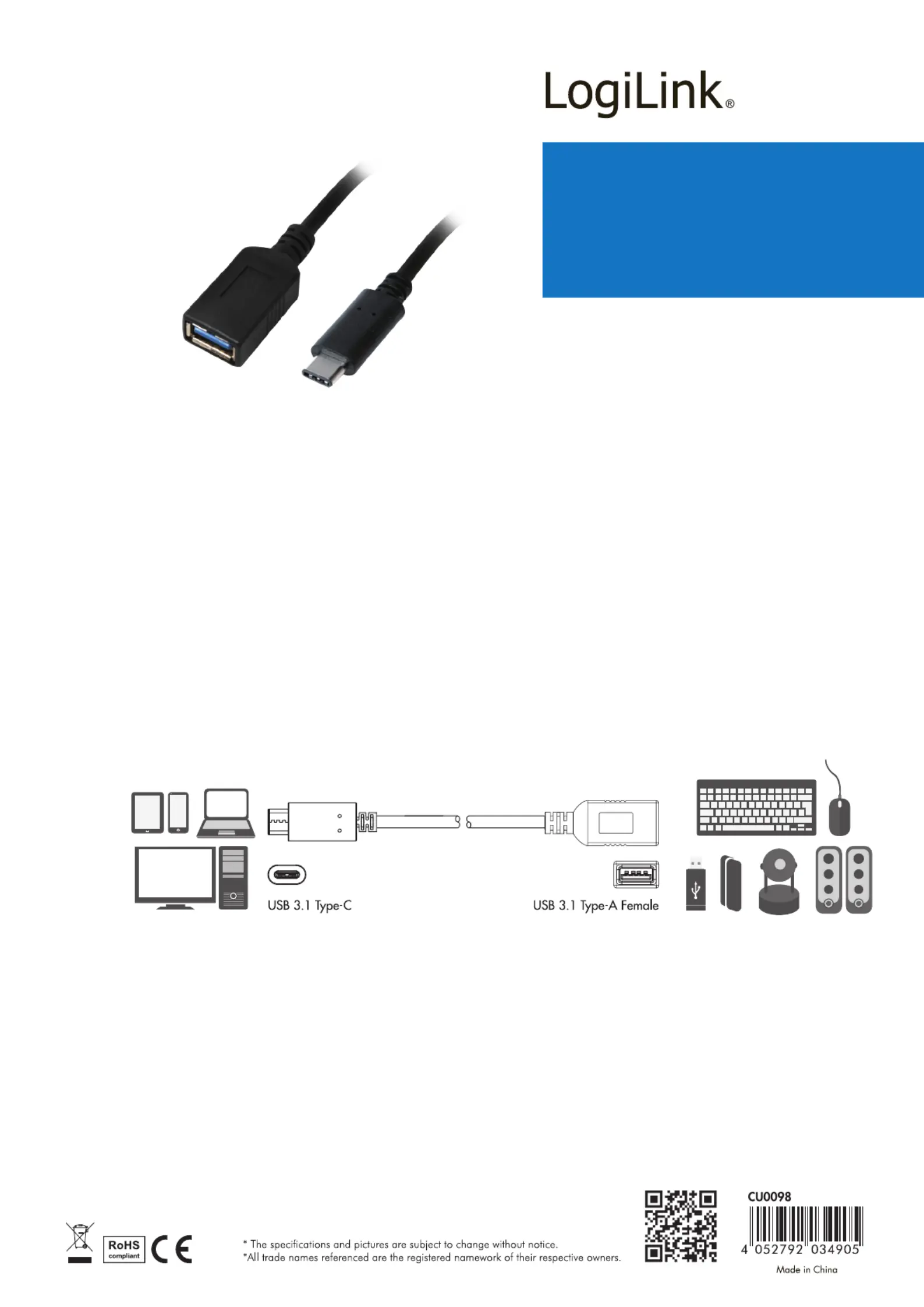LogiLink® CU0098 USB Type-C Legacy Adapter lets you connect standard USB accessories like