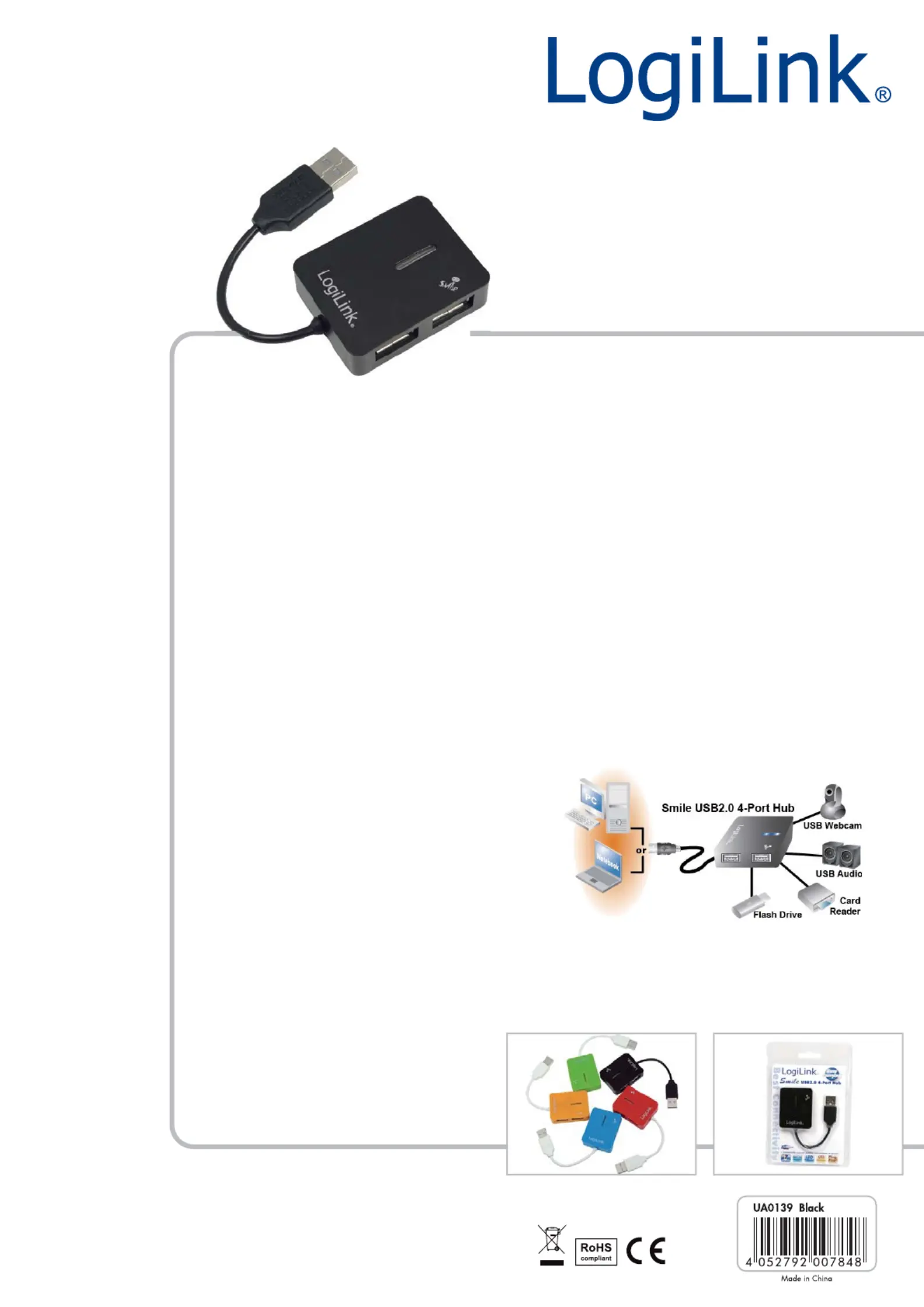 Lies die bedienungsanleitung für LogiLink UA0139 (1 Seiten) kostenlos online; sie gehört zur Kategorie USB-Hub. Dieses Handbuch wurde von 29 Personen als hilfreich bewertet und erhielt im Schnitt 4.9 Sterne aus 15 Bewertungen. Hast du eine Frage zu LogiLink UA0139 oder möchtest du andere Nutzer dieses Produkts befragen? Stelle eine Frage