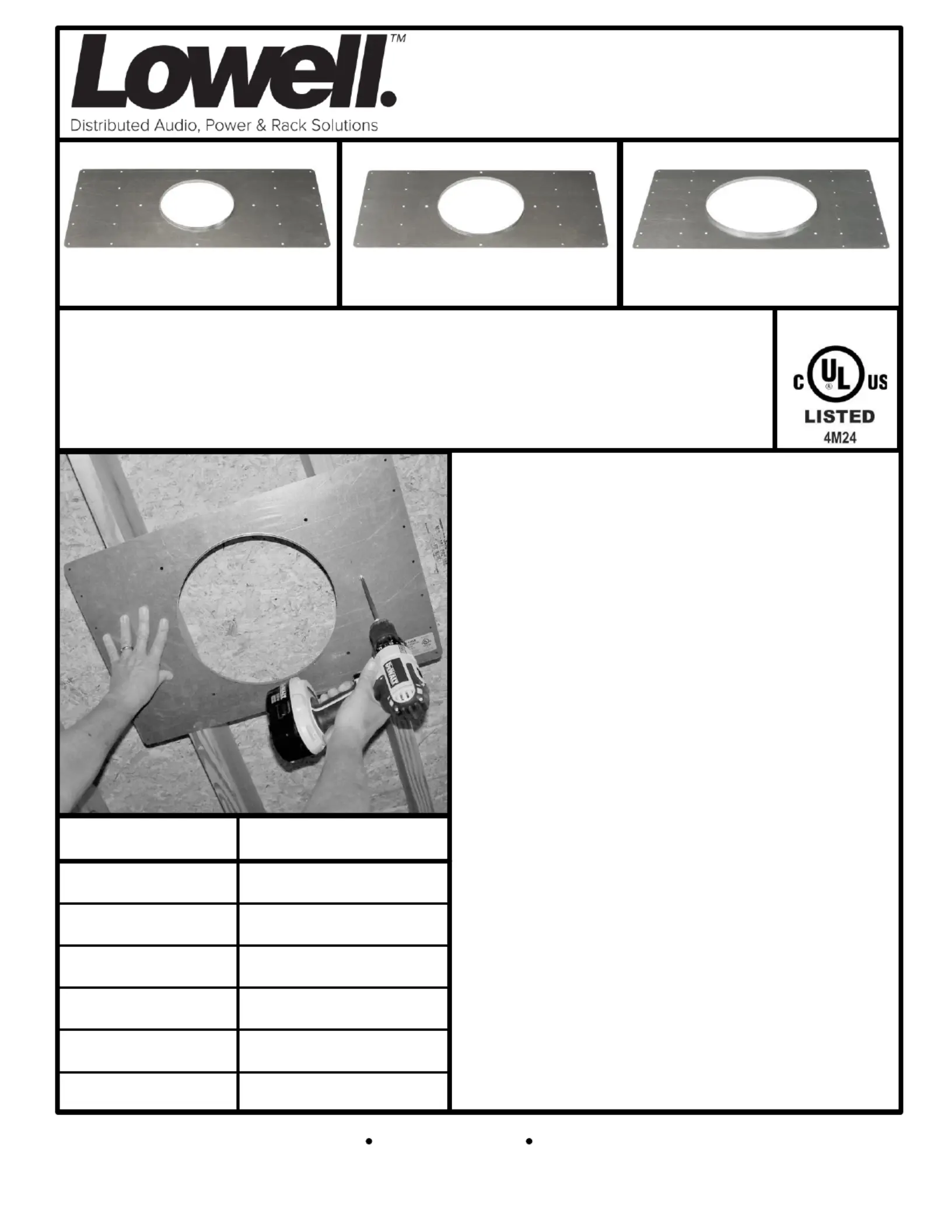 Installation Sheet For: