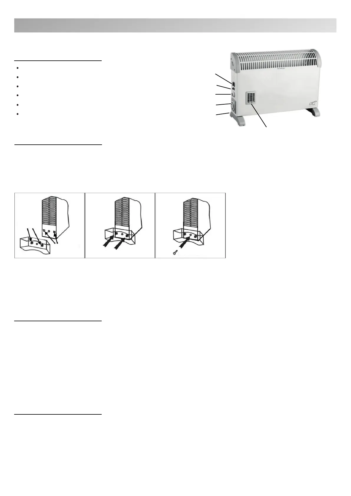 grzejnika. Nie wolno włączać urządzenia bez zamontowanych stopek. Grzejnik działa