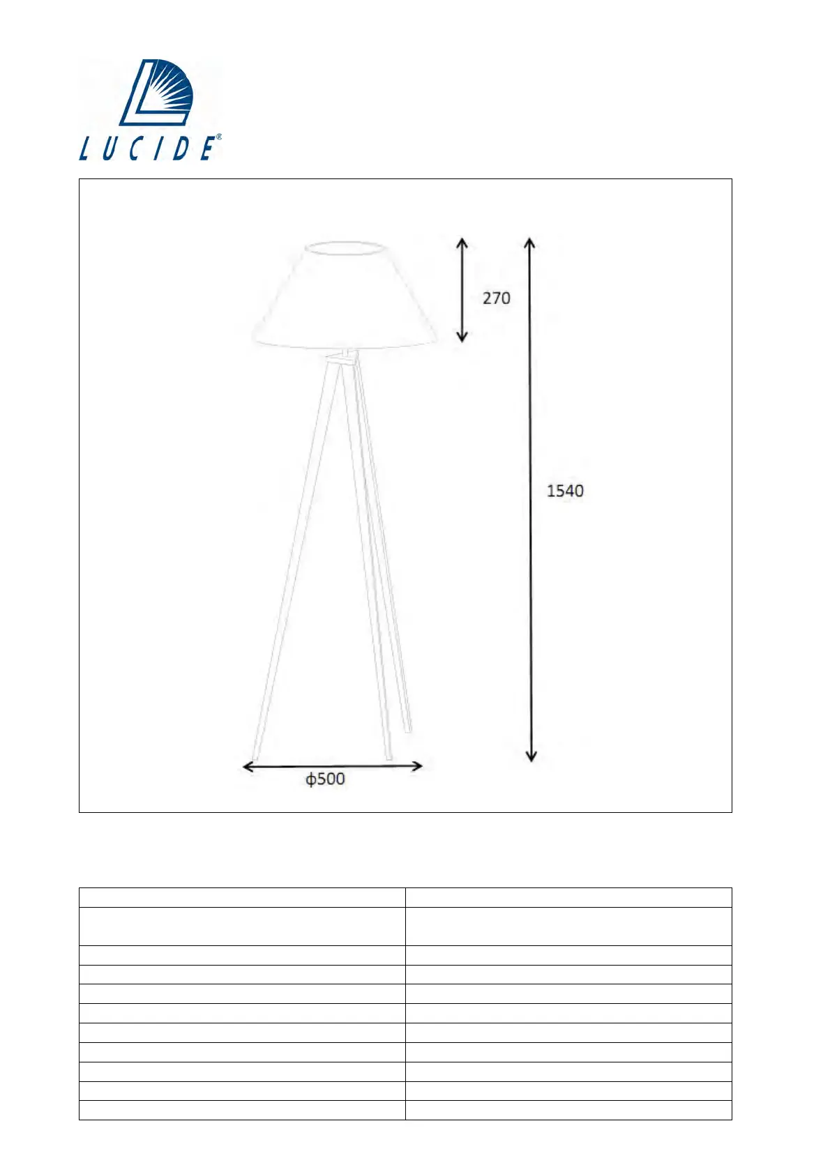 Bulb type and maximum wattage: E27 Max.60W