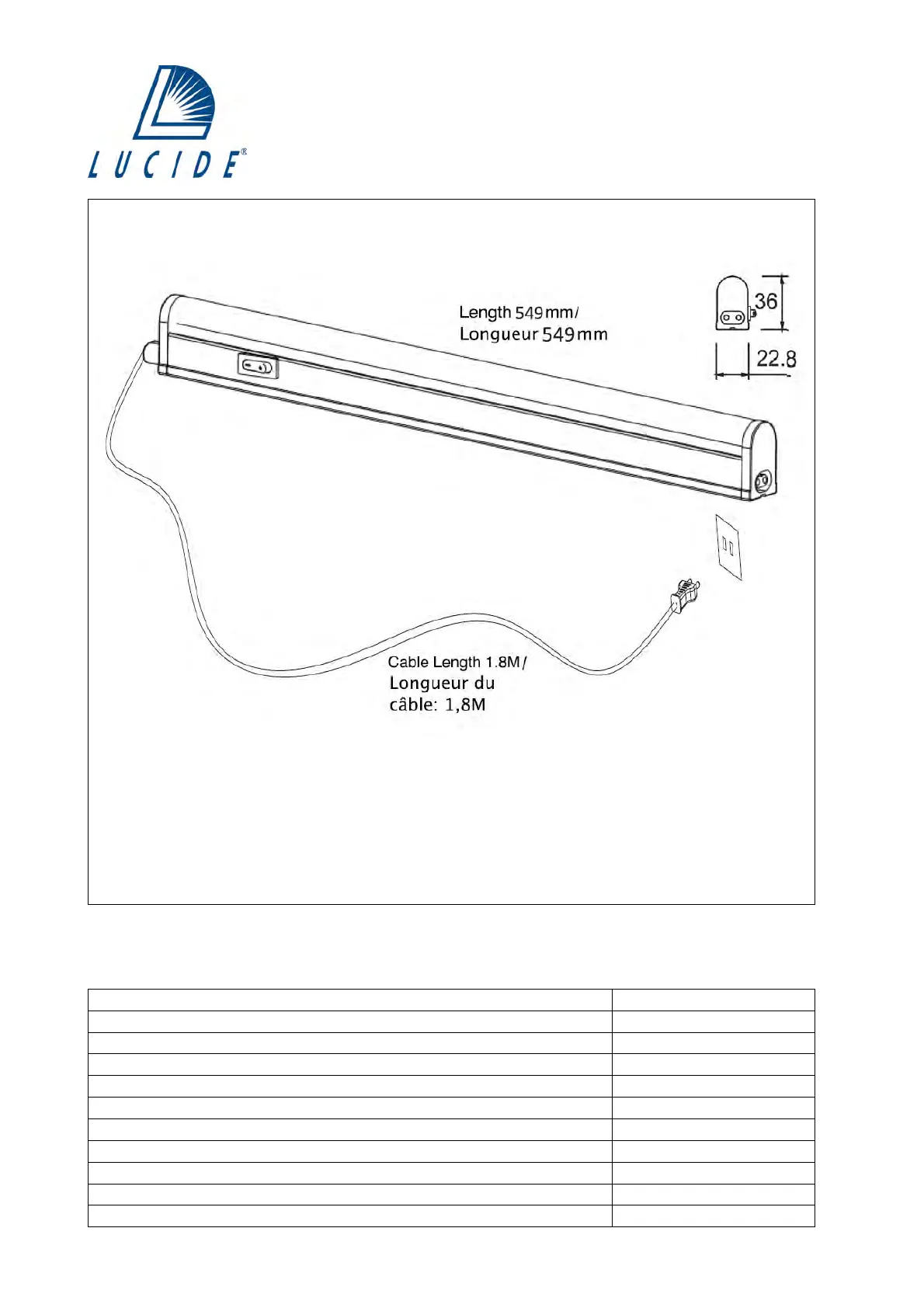 Length/Largeur: 549mm