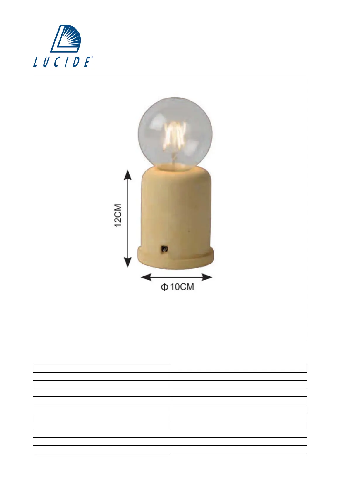 Bulb type and maximum wattage:E27 Max.60W