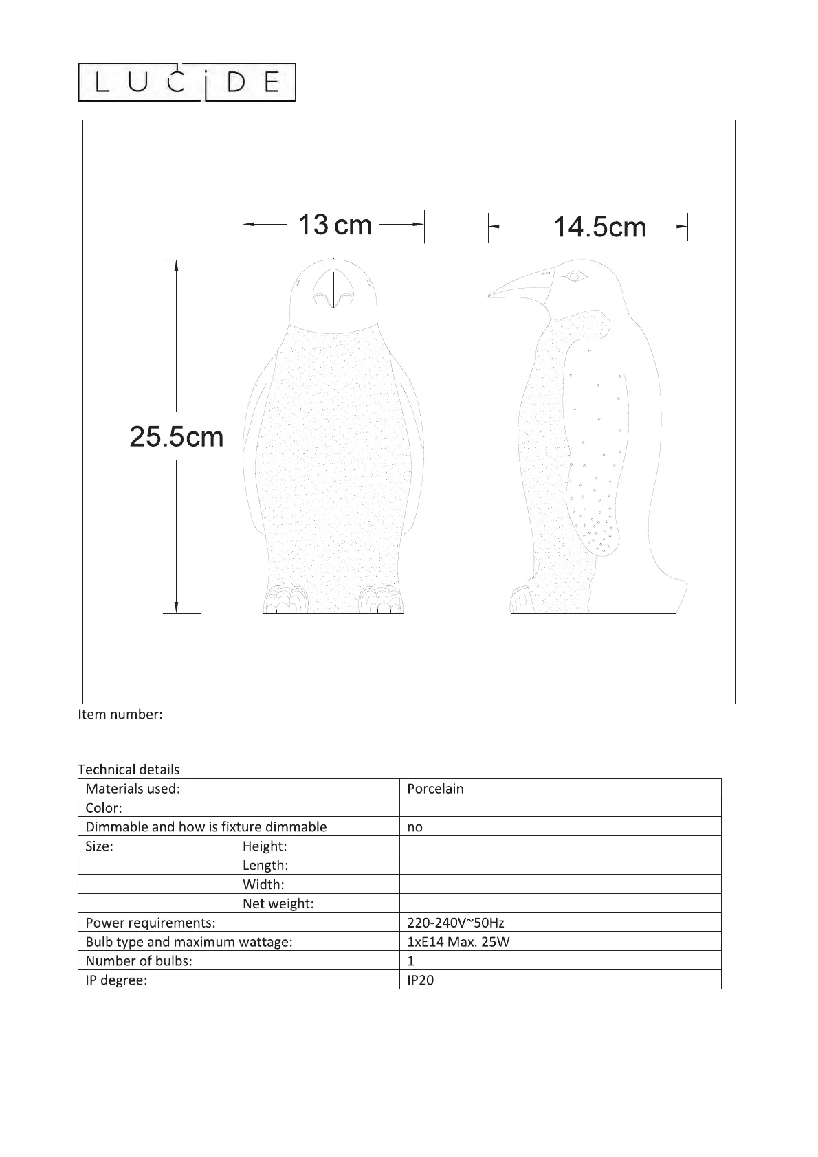 Lies die bedienungsanleitung für Lucide Pinguin 13532/01/31 (3 Seiten) kostenlos online; sie gehört zur Kategorie Nicht kategorisiert. Dieses Handbuch wurde von 22 Personen als hilfreich bewertet und erhielt im Schnitt 5.0 Sterne aus 5 Bewertungen. Hast du eine Frage zu Lucide Pinguin 13532/01/31 oder möchtest du andere Nutzer dieses Produkts befragen? Stelle eine Frage