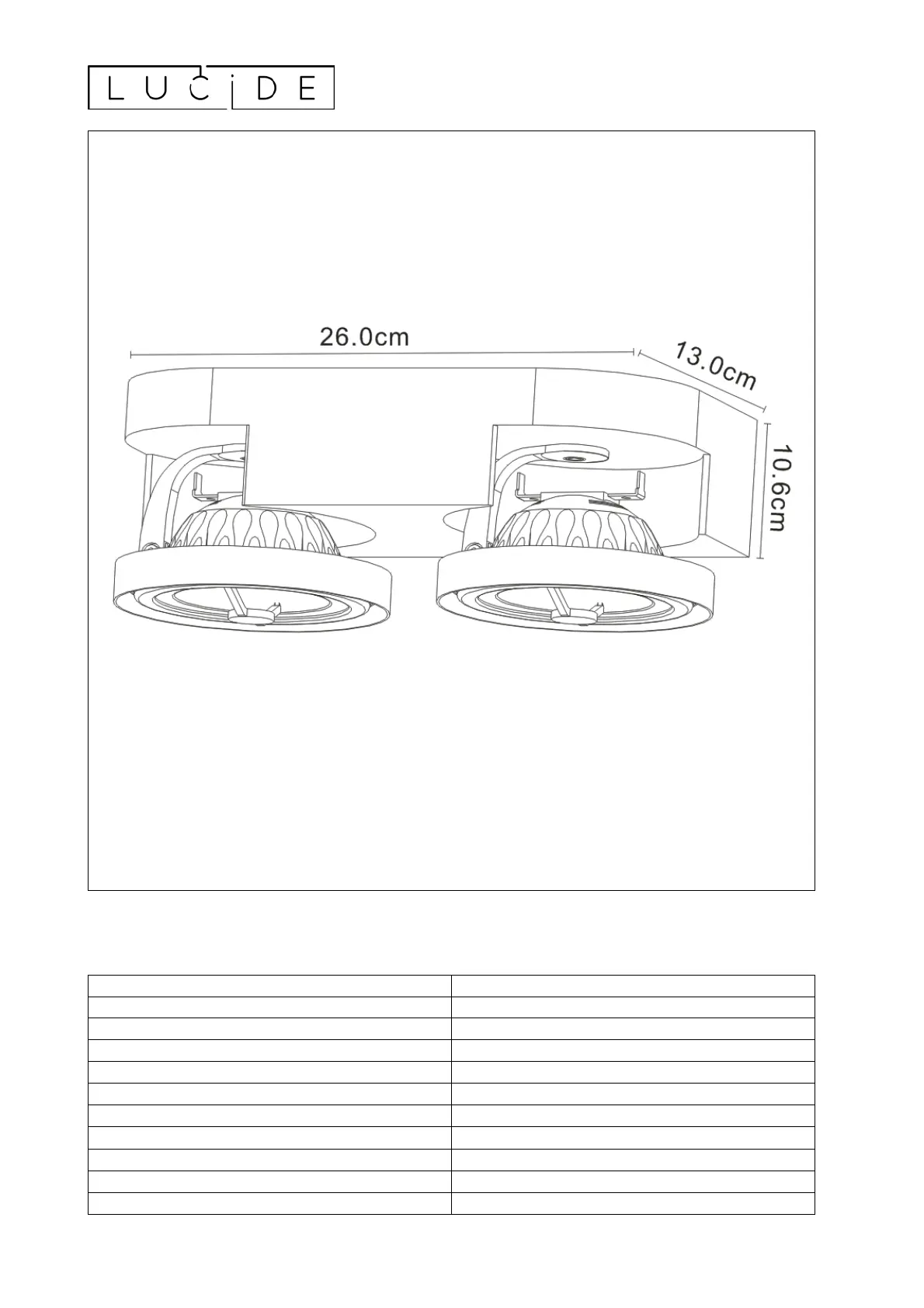 Lies die bedienungsanleitung für Lucide Versum ar111 22960/20/30 (3 Seiten) kostenlos online; sie gehört zur Kategorie Beleuchtung. Dieses Handbuch wurde von 13 Personen als hilfreich bewertet und erhielt im Schnitt 4.5 Sterne aus 2 Bewertungen. Hast du eine Frage zu Lucide Versum ar111 22960/20/30 oder möchtest du andere Nutzer dieses Produkts befragen? Stelle eine Frage