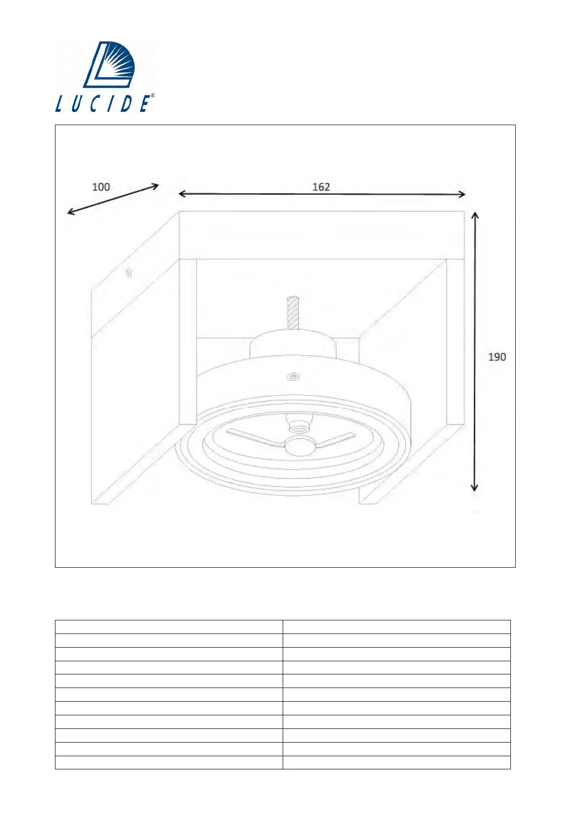 Bulb type and maximum wattage: AR111 LED 12W Max.