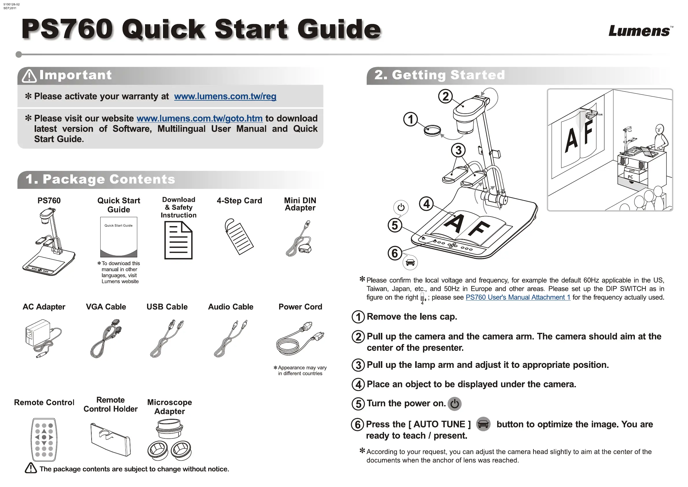 Lumens PS760 Bedienungsanleitung