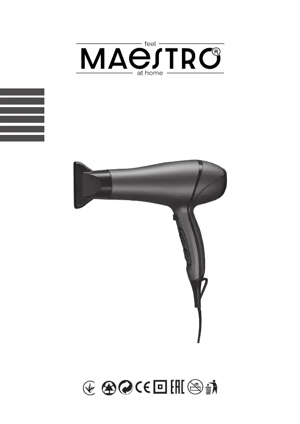Lies die bedienungsanleitung für Maestro MR-215 (48 Seiten) kostenlos online; sie gehört zur Kategorie Haartrockner. Dieses Handbuch wurde von 2 Personen als hilfreich bewertet und erhielt im Schnitt 4.4 Sterne aus 1.5 Bewertungen. Hast du eine Frage zu Maestro MR-215 oder möchtest du andere Nutzer dieses Produkts befragen? Stelle eine Frage