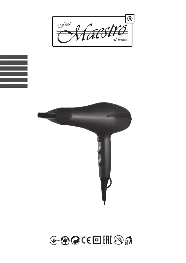 Lies die bedienungsanleitung für Maestro MR-223 (38 Seiten) kostenlos online; sie gehört zur Kategorie Haartrockner. Dieses Handbuch wurde von 19 Personen als hilfreich bewertet und erhielt im Schnitt 4.9 Sterne aus 4 Bewertungen. Hast du eine Frage zu Maestro MR-223 oder möchtest du andere Nutzer dieses Produkts befragen? Stelle eine Frage