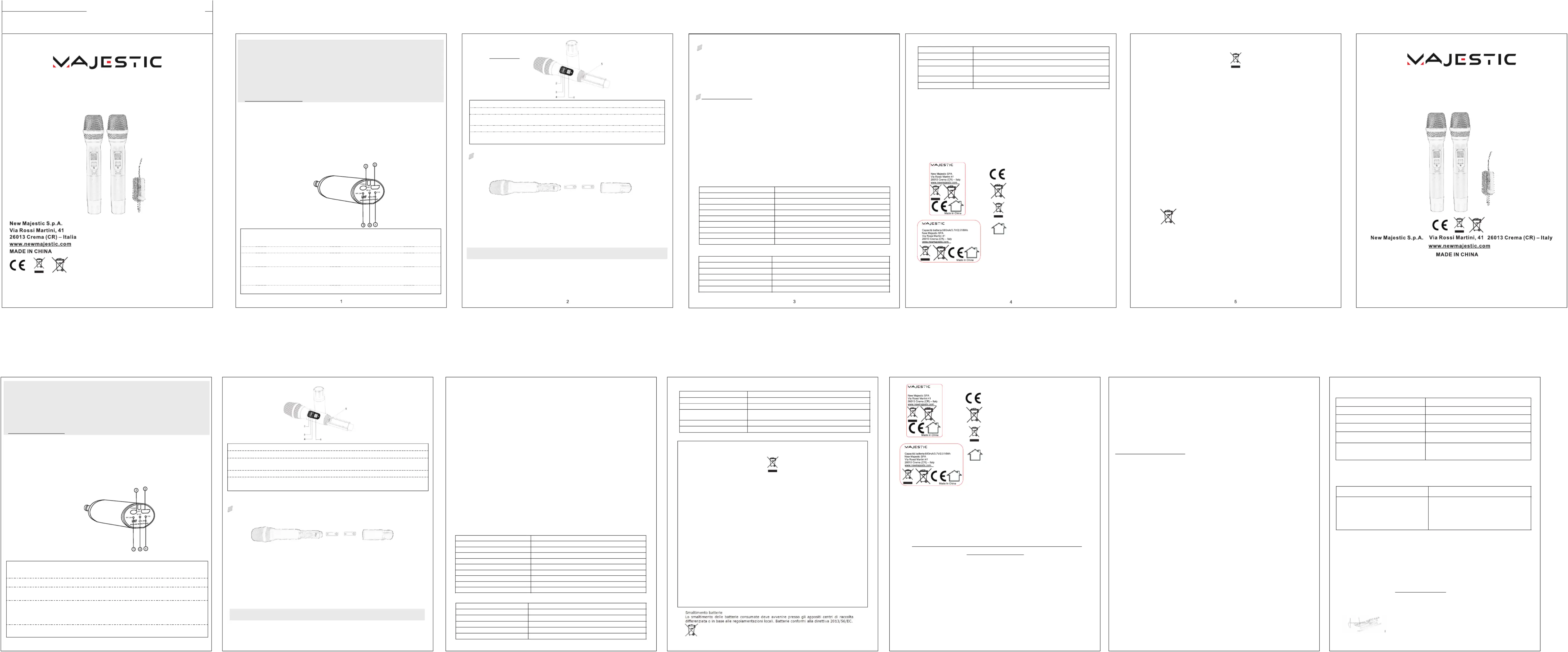 Il fabbricante, New Majestic S.p.A., dichiara che il tipo COPPIA DI MICROFONI UHF