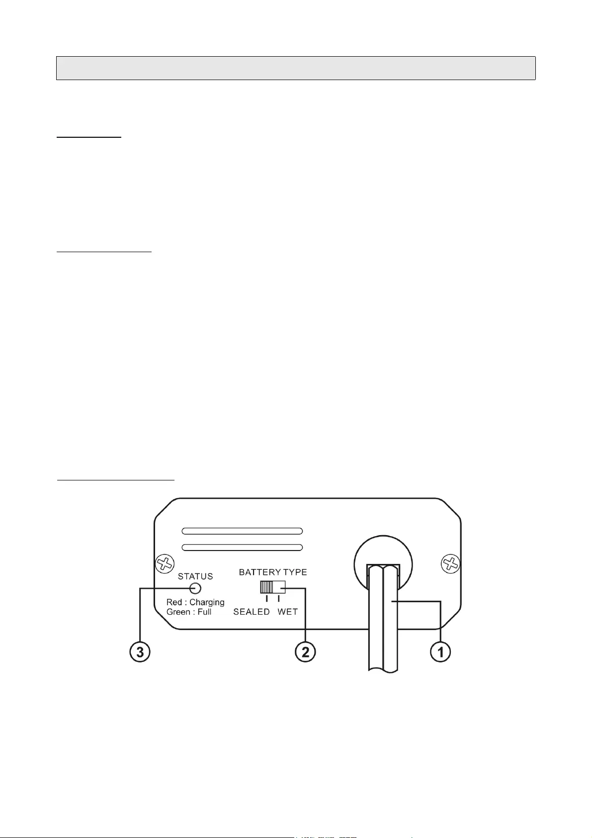 2.Battery Type Switch for selection charged battery : Sealed or Wet type.