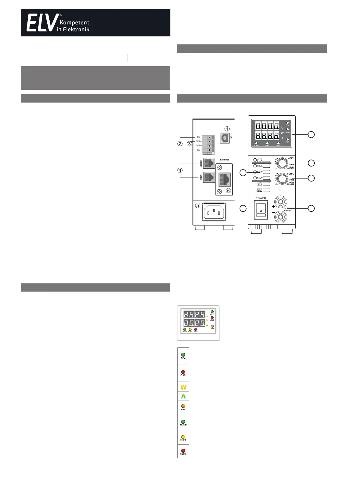 7. Display mit Anzeige für Konstantspannungs- (CV)/Konstantstrombetrieb (CC)