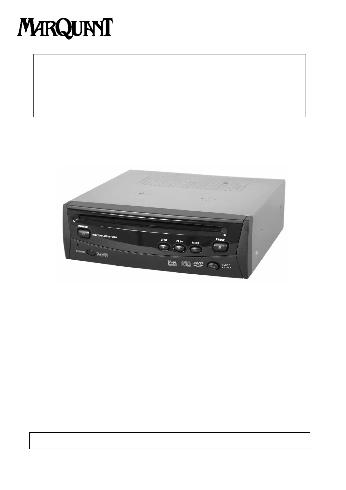 Lies die bedienungsanleitung für MarQuant MCD02 (12 Seiten) kostenlos online; sie gehört zur Kategorie Tragbarer DVD-Player. Dieses Handbuch wurde von 37 Personen als hilfreich bewertet und erhielt im Schnitt 4.0 Sterne aus 5 Bewertungen. Hast du eine Frage zu MarQuant MCD02 oder möchtest du andere Nutzer dieses Produkts befragen? Stelle eine Frage