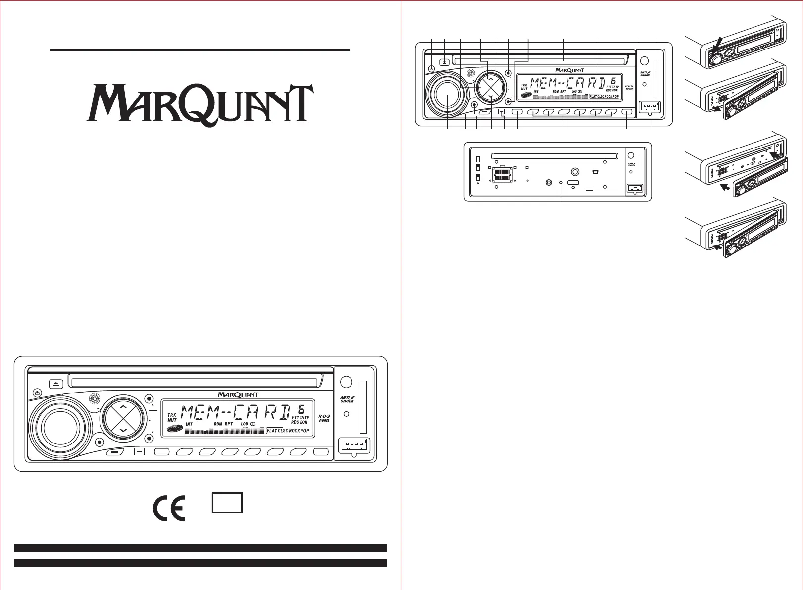 Lies die bedienungsanleitung für MarQuant mcr 726 (8 Seiten) kostenlos online; sie gehört zur Kategorie Autoradio. Dieses Handbuch wurde von 33 Personen als hilfreich bewertet und erhielt im Schnitt 4.8 Sterne aus 8 Bewertungen. Hast du eine Frage zu MarQuant mcr 726 oder möchtest du andere Nutzer dieses Produkts befragen? Stelle eine Frage