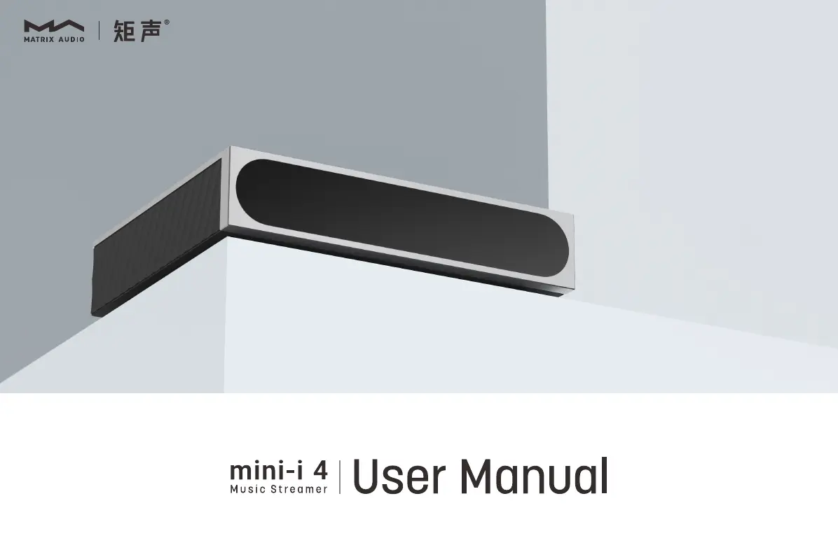 Lies die bedienungsanleitung für Matrix Audio Mini-i 4 (12 Seiten) kostenlos online; sie gehört zur Kategorie Audio-Streamer. Dieses Handbuch wurde von 13 Personen als hilfreich bewertet und erhielt im Schnitt 4.3 Sterne aus 7 Bewertungen. Hast du eine Frage zu Matrix Audio Mini-i 4 oder möchtest du andere Nutzer dieses Produkts befragen? Stelle eine Frage