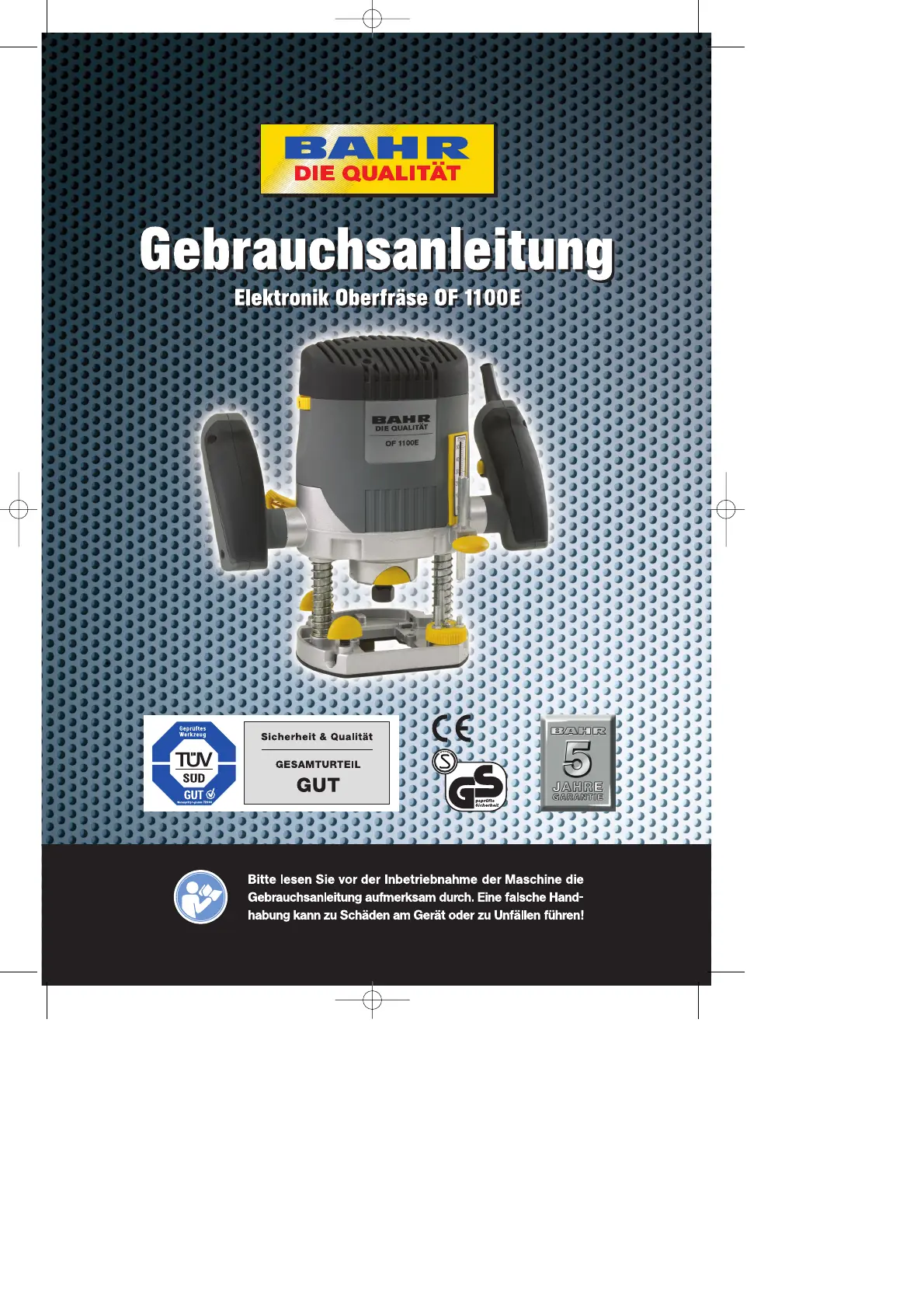 Lies die bedienungsanleitung für Max Bahr OF 1100 E (16 Seiten) kostenlos online; sie gehört zur Kategorie Hobel. Dieses Handbuch wurde von 57 Personen als hilfreich bewertet und erhielt im Schnitt 4.7 Sterne aus 29 Bewertungen. Hast du eine Frage zu Max Bahr OF 1100 E oder möchtest du andere Nutzer dieses Produkts befragen? Stelle eine Frage