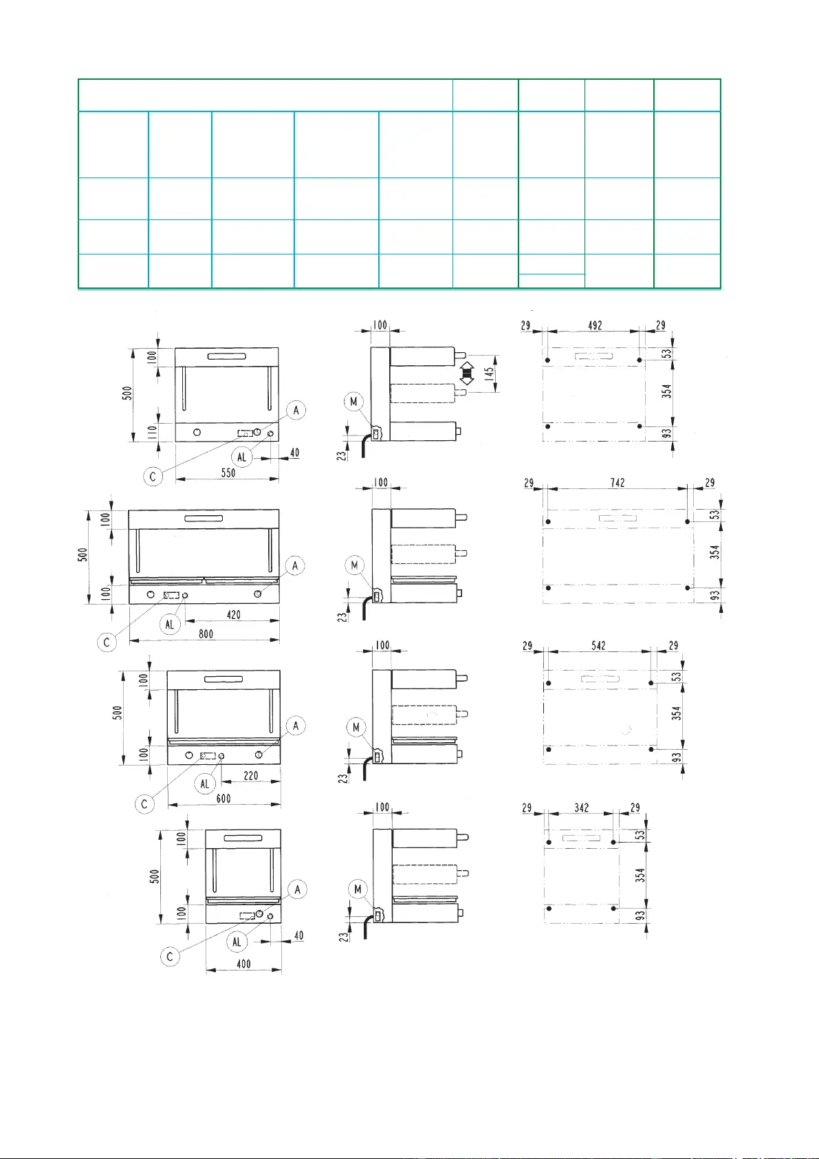 esterne dimensions extérieures externas 400x450 600x450 800x450 550x450