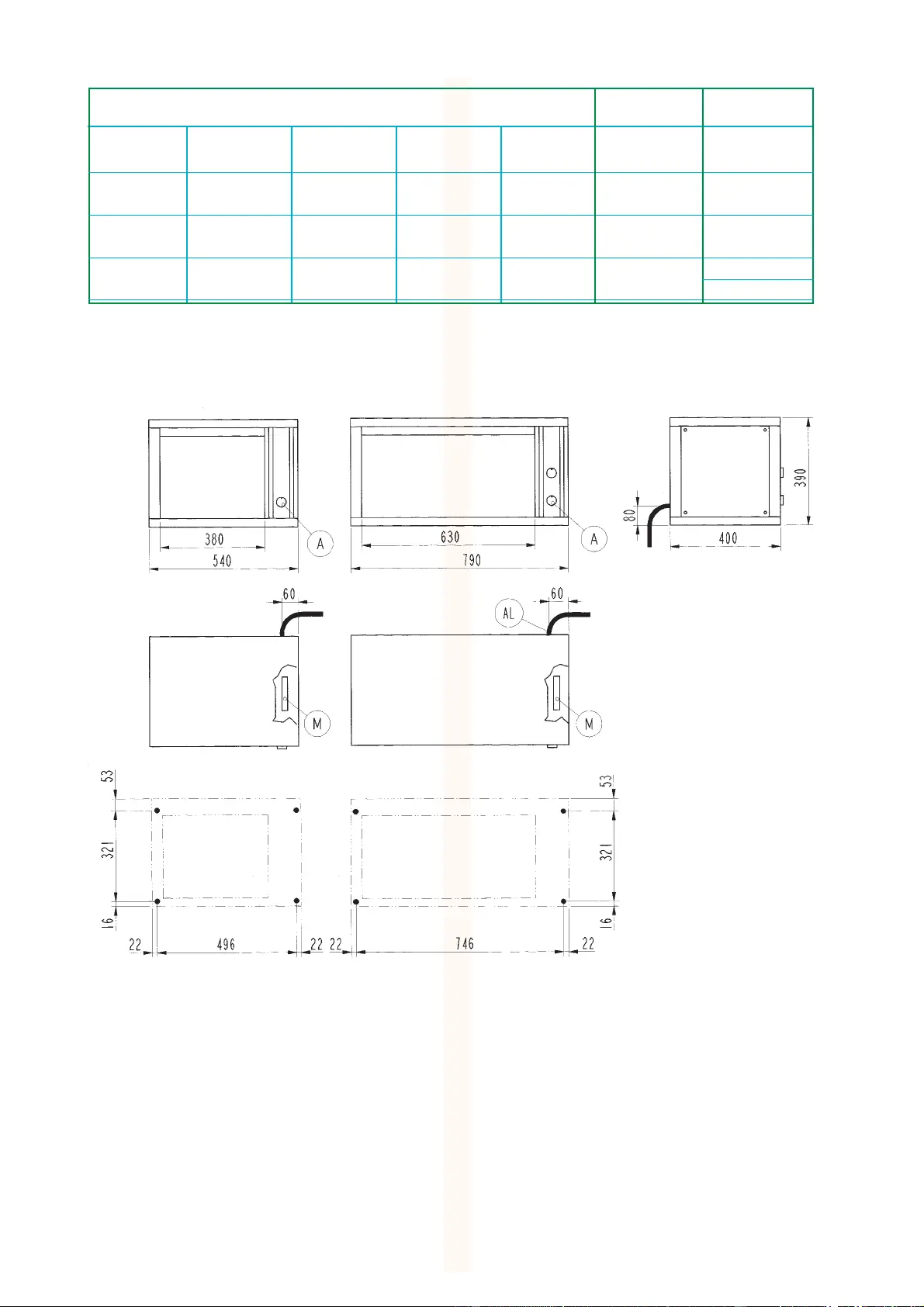 esterne dimensions extérieures externas 540x400x390h 790x400x390h