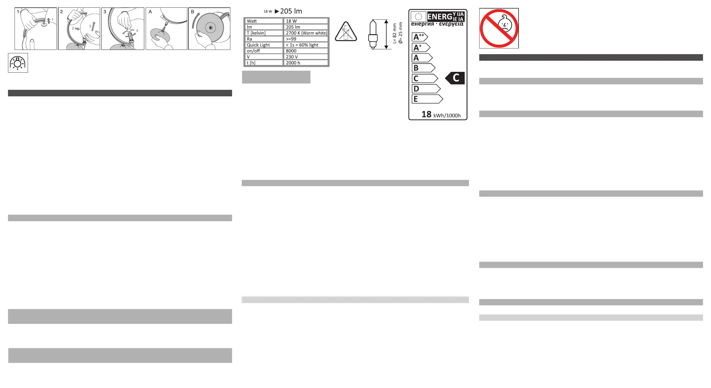 Lamp 220-240 V ~, 50/60 Hz 18W/E14