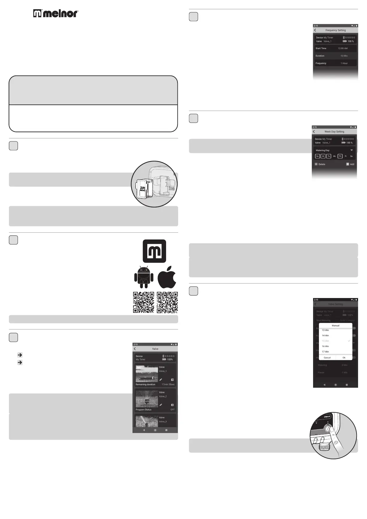 This instruction guide is a universal manual for Melnor 1, 2 and 4 Zone