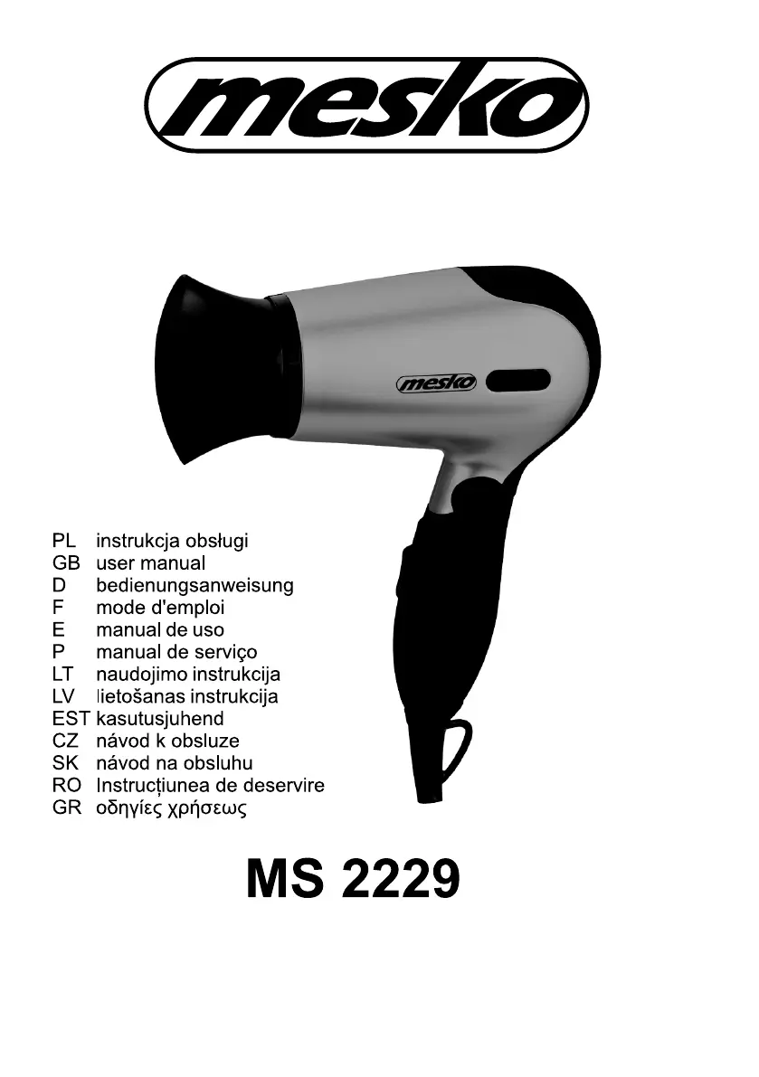 Lies die bedienungsanleitung für Mesko MS 2229 (20 Seiten) kostenlos online; sie gehört zur Kategorie Fön. Dieses Handbuch wurde von 24 Personen als hilfreich bewertet und erhielt im Schnitt 4.6 Sterne aus 6 Bewertungen. Hast du eine Frage zu Mesko MS 2229 oder möchtest du andere Nutzer dieses Produkts befragen? Stelle eine Frage