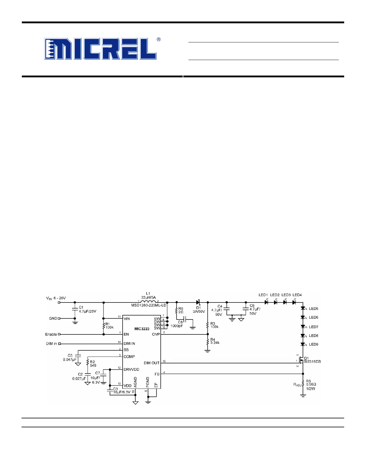 an accuracy of ±5%. The MIC3223 can be dimmed through